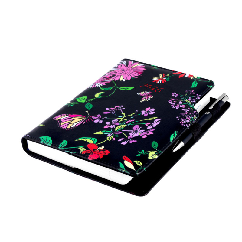 Diář DESIGN denní B6 2026 - černá - Květy
