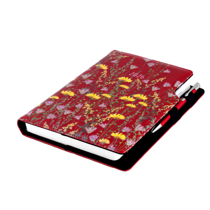 Diář obsahuje: kulaté odtrhávací rožky, bílou záložku a propisku